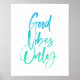Good Vibes Only typography poster print features modern hand-lettered typography in blue green ombre, an inspiring quote to hang on your wall.