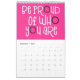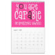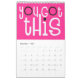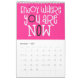 Good vibes calendar with a positive message for every month of the year in bold quirky typography. The front and back covers have a black background, and inside hot pink, with white typography with hot pink or black highlights accordingly. You can change the background colours if you so wish via the Click to Customise Further option.