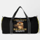 This amusing black and olive green duffle bag features a happy beaver holding a log, with the witty phrase "GOOD WOOD MAKES A BEAVER HAPPY." It’s a playful and cheeky design for those who enjoy double entendre and a good laugh. Perfect for anyone with a bold sense of humour or a fondness for beavers. Edit colour of the bag caps and body in the Design tool to your favored colours.