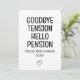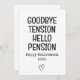 Make Dad smile with this "Goodbye Tension Hello Pension Happy Retirement" funny retirement card, perfect for celebrating his big milestone. Featuring a humourous design, this card is a lighthearted way to show your appreciation for all his hard work and dedication. Whether paired with a thoughtful gift or given on its own, it’s a great way to honour Dad as he steps into his well-deserved retirement with laughter and love!