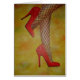 Goody Two Shoes is an original painting in red and yellow of a woman wearing fishnet stockings and bright red heeled shoes. A unique gift with a fashion theme ideal for Red Shoe Day campaigns ,or Red Shoe Walks. Perfect for those who love leggings, hosiery, and fashion, lovers of a grunge look, or fetishists of stockings and high heels.
