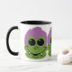 Adorable smiling goblin has green skin, funky purple hair, fangs and big sweety eyes. A fun gift for Halloween or every day.