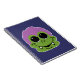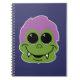 Adorable smiling goblin has green skin, funky purple hair, fangs and big sweety eyes. A fun gift for Halloween or every day.
