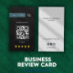 Inviting your clients to leave a review of your small business or the services you provide, this business card template enables you to add a QR code linked to Google Reviews, your social media usernames, business name, and customisable text. Edit your details, incorporate the social media icons relevant to your business, and personalise the text to suit your needs. Add your logo to this modern design, empowering your customers to rate your business and leave 5-star reviews.