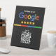 Encourage customer feedback with this sleek and modern Google Review QR Code Pedestal Sign. Designed with a bold black background and the iconic Google logo, this sign makes it easy for patrons to leave a review. The prominent QR code, accompanied by 'Scan QR' text, directs customers straight to your Google review page, simplifying the process for them and boosting your online presence. The classic star rating graphic adds a touch of credibility and appeal. This sign is perfect for any business looking to enhance its online reputation and gather valuable customer insights.