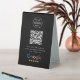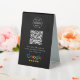 A simple custom black 4x6 business tabletop plastic double-sided table tent sign in a modern minimalist style, designed to feature a scannable QR code that links directly to your Google Reviews page. This versatile template can be personalized with your company logo, graphic, or photo, along with your QR code and a custom message that encourages customers to share feedback. The review platform logo can also be swapped for Yelp, TripAdvisor, Facebook, or any other site to create a bespoke and professional design that suits your business. Perfect for cafes, salons, boutiques, offices, and service-based brands, this clean display helps boost engagement and grow your reputation. Tip: Use the free GatherUp Review URL Generator to create a direct link to your review page before generating your QR code.