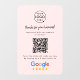 A simple custom blush pink business window display cling vinyl decal sign in a modern minimalist style, designed to feature a scannable QR code that links directly to your Google Reviews page. This versatile template can be personalised with your company logo, graphic, or photo, along with your QR code and a custom message that encourages customers to share feedback. The review platform logo can also be swapped for Yelp, TripAdvisor, Facebook, or any other site to create a bespoke and professional design that suits your business. Perfect for cafes, salons, boutiques, offices, and service-based brands, this clean display helps boost engagement and grow your reputation. Tip: Use the free GatherUp Review URL Generator to create a direct link to your review page before generating your QR code.