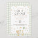 Goose Baby Shower Invite Green. Gender Neutral Gingham Silly Goose On The Loose Invitation. Printable Sage Spring Geese Party Template. G3