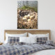 This canvas features a photo of a goose nest on a pond with five eggs.
