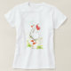 A Ladies' T-shirt with a goose, front and back, setting out on a journey with its belongings tied up in a red and white spotted handkerchief, from watercolour painting by Judy Adamson. Ideal for anyone setting off their travels - eg a gap year. Use this image on the T-shirt of your choice for ladies, men or children.