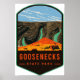 A vintage style park badge design of Goosenecks State Park overlooking a deep meander of the San Juan River located near Mexican Hat, Utah USA.