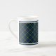 Bone china mug with the Gordon family clan tartan pattern. Traditional vintage Scottish plaid from between 1930 and 1950 in blue, green, and yellow.