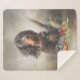 The fabric is really soft, and thick, I’m sitting here with it wrapped around me and it’s so warm! It’s really smooth and sleek on the printed side and fluffy on the back. I love it! Such good quality, so vibrant and clear, not blurry at all! See the photos I’ve attached, there’s no filters or anything on them!