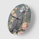 Gorgeous African Grey Parrot With Elegant Florals Round Clock