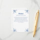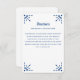 This wedding enclosure card features papel picado inspired accents in blue over a white background. This design coordinates with our Papel Picado Collection. See the collection for coordinating items. All colours of this design are customisable by using the editor tool.