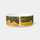 This is a heavy, durable bowl decorated with Tibbies of many colors, the perfect size for hungry/thirsty Tibs. The design is interesting and printing clear.