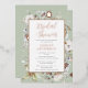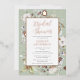 This elegant bridal shower invitation features beautiful watercolor botanical illustrations on a sage green background with raised rose gold foil accents. This invitation is easy to customise and would be perfect for a rustic yet elegant event. Background and text colours are customisable. The raised foil is available in gold, silver, and rose gold.