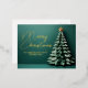 Gorgeous gold foil script on an elegant green background and a Christmas tree that gives the unique illusion of looking 3D complete with a pretty star at the top. A modern handwritten scrawl above your personalised greeting on a modern non photo holiday postcard.