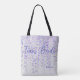 Gorgeous Lilac Hanging Wisteria Team Bride Tote Bag. Beautiful wispy long hanging purple wisteria on a silver background making the wisteria really pop. Great gift for your bridal party. Easy to edit with title or names for the whole group!