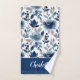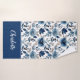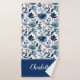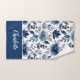 Custom Floral Bath Towel Set with Rich navy blue floral pattern and your name or custom text in white script on deep navy.