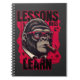 This is a design of a Gorilla smoking a cigar with clear eye glasses on in a suit with the written words LESSONS LEARN BOSS