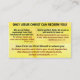 Gospel cards for the purpose of Evangelising. Lovingly spread the Word of God and share the Gospel of Jesus Christ with others. The Bible verses on the card are from the King James Version.