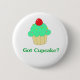 Got Cupcake button pin. Customisable button says Got Cupcake with a colourful green cupcake, sprinkles and cherry on top.