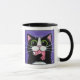 Whimsical cat mug. Sox the cat has his favourite food... shrimp! Original artwork: acrylic on canvas © 2008 Lisa Marie Robinson