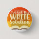 A fun and cheeky I’ve got the write solution author answer writer pride saying favourite author slogan reading is awesome illustrated library love authors motto design I love writing book lover deluxe pinback button that’s perfect for writers and readers. Get an epic author writing your next favourite author slogan button today.
