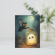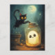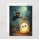 Halloween scene with ghost and black cat.