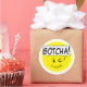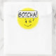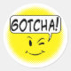 Gotcha! Speech bubble. Custom round stickers in black, white and yellow.