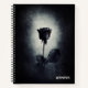 A dark and mysterious personalised spiral notebook with a cool illustration of a goth /emo style black rose with red dripping blood on its petals. A black grunge background with an off-white colour in the centre highlighting this moody and macabre rose.
