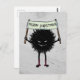 Goth Christmas postcard with an evil character from the family of the Evil Flower Bug holding a sign with the text Merry Christmas. Great for bringing the naughty in your nice Christmas mood.