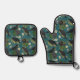 Goth Crows & Black Roses Deep Teal Pattern Oven Mitt & Pot Holder Set