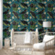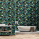 Goth Crows & Black Roses Deep Teal Pattern Wallpaper