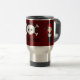 Customisable Goth Girls Rock! travel mug with cute Goth girl cartoon characters with long red hair & headphones holding skulls. A skull with headphones in the centre of the mug. Dark red background with a black border. Funky skull font. A fun & original gift for music loving goth girls.