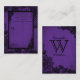 Black lace on purple grunge background place card design for a Gothic wedding.
