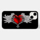 Goth, jewel-like heart, slightly crushed and a little cracked but not broken with Angel Wings