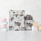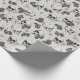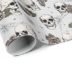 Hand-drawn in black ink, this wrapping paper features a beautiful pattern of skulls, roses and spiderwebs in cream and blush tones, all against an elegant light grey background.