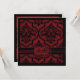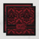 Red and black damask print grunge-look Gothic wedding invitation card.