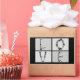 This fun skeleton sticker is for lovers of all things gothic, but skulls and skeletons in particular, and who have a black sense of humour! The design shows four skeleton outlines that spell out the word Love. Each of the letter shapes is in a grey coloured box. The brushstrokes are by type genius Manfred Klein and are from his Tango Macabre font. The sticker would be ideal for a goth wedding or engagement, or anyone who likes to walk on the dark side of life.