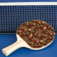Overall, it's a nice product but for what you pay the quality isn't very good. The way it's glued together, as you can see in the pictures, is messy, the glue is visible and shiny, there's some ink staining that looks like black fluff but isn't, it won't come off. On the paddle's black surface there are also little white marks here and there. It's not too easy to show in the pictures because of the flash but I tried to showcase the little white blemishes that ruin a smooth black surface. This was meant to be a gift and it just looks sloppily put together unfortunately. A few imperfections that mar what could have been really great. The printing was neat.