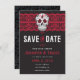 Goth Skull Swirl & Lace Wedding Save the dates in red & black. Perfect for any event with a day of the dead (dia de los muertos), calavera, or cool theme. Coordinating additional cards available in the shop but if not found or have any edits, please email articulosdepapel@gmail.com or through the "Ask the Designer" link. Most edits done within 24 hours.