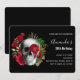 Goth Skull with Red Flowers & Gold Leaves Birthday Invitation