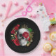 Goth Skull with Red Flowers & Gold Leaves Paper Plate