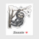 A whimsical drawing that combines a gothic aesthetic with one of the most beloved tree-swinging animals, the sloth.