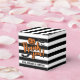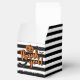 Small baby shower thank you boxes printed with goth stripes in black and white, and a Halloween-themed thank you design with a bold orange script, a carved pumpkin smiling happily at the baby shower guests, and cute little bats. Sign off with your name and the name or nickname of your little boo who's almost due! The black text is customisable and the favour boxes works equally well for any other type of Halloween-themed event, like a Halloween bridal shower, Halloween wedding, Halloween birthday party, and Halloween costume party.