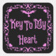 A goth magical border with hearts, a winged key "Key To My Heart " in pink and black.