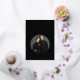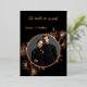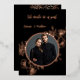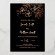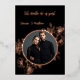 This elegant wedding invitation features a photo and rose gold foil flowers on a black background. Bride and groom names in an elegant handwritten script. "Till death do us part" headline