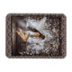 This beautiful angel sits on her Gothic balcony with rose covered archway- a single white dove brings her a red rose - gives a Gothic mystical feel to any room, torn edges on a brocade backdrop